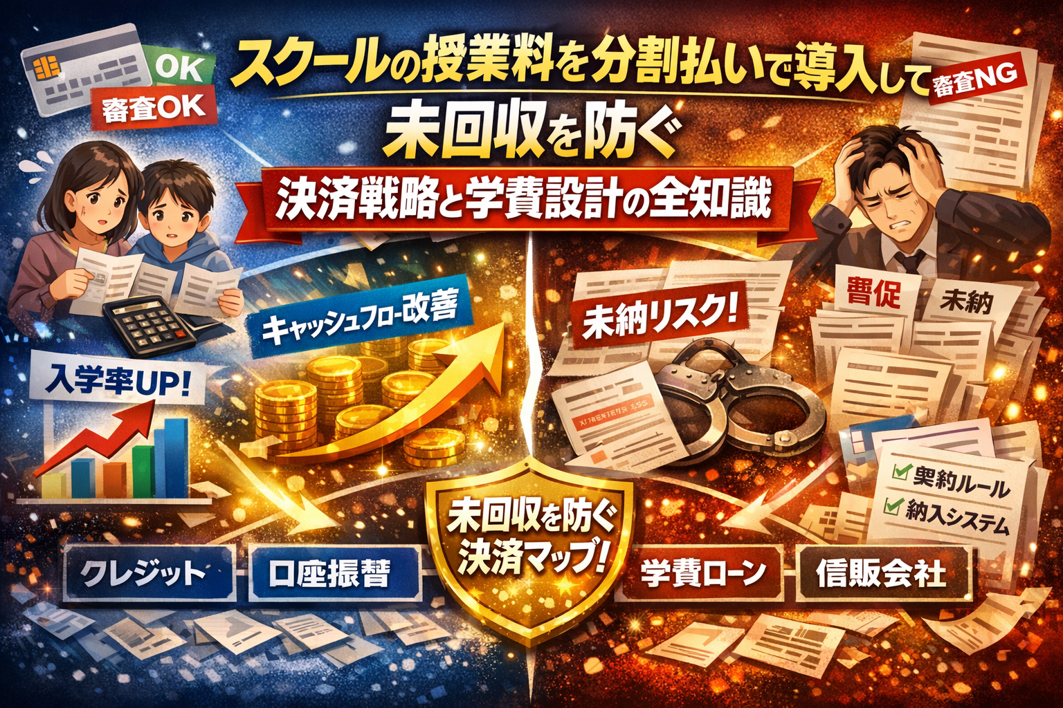 本記事では、クレジット・学費ローン・信販・口座振替を一つの「決済マップ」として整理し、月謝と高額コースでの使い分け、学校規模別の現実的な納入方法の組み合わせ方、チャージバックや支払停止への備え方まで、現場で使えるロジックに落とし込みます。さらに、学費管理システムとの連携や契約書・規約の整え方、交付金や教育ローンとの組み立て方まで踏み込み、「分割払いを導入しても焦げ付かせないための決済戦略テンプレート」を提供します。学費の値上げと未回収の板挟みから抜けたいスクール運営者ほど、最後まで読む価値があります。