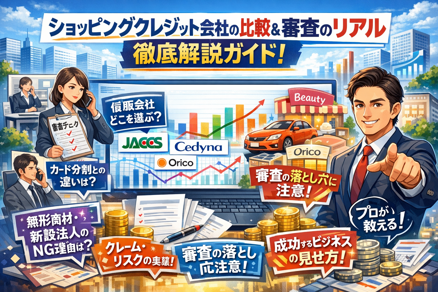 本記事では、ショッピングローンとクレジットカード分割のギャップ、信販会社と加盟店とユーザーの関係、会社ごとの役割の違いを整理したうえで、在籍確認などの電話連絡のリアル、役務・無形商材や設立まもない法人が審査で落ちる本当の理由まで実務目線で解剖します。さらに、手数料だけでは見えない総コスト、審査通過率やクレーム件数を踏まえた会社比較、Web制作やエステ、スクールなどが外せないチェックポイントと「選ばれるビジネスの見せ方」まで具体的に落とし込みます。ショッピングクレジット会社を感覚で選ぶ前に、この構造を知らないこと自体が損失になっていると理解して読み進めてください。