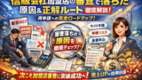 | 構成の後半(失敗事例・運営ノウハウ・ケーススタディ) | 炎上・キャッシュ不足・ロケーション喪失を避けるチェックリストと、属性別の最適な資金調達フロー | 設置場所・在庫・契約条件を甘く見て、黒字のはずが現金と信用を同時に失うリスクを事前に潰せていない状態 |