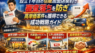 設立1年目なのに、すでに「法人カード審査落ちた」「クレジットカード加盟店審査落ちた」を経験しているなら、今のまま闇雲に申し込むほど、見えない損失が膨らみます。実は、設立1年目でもオリコやジャックスなどの信販加盟店契約は十分狙えます。ただし鍵...
