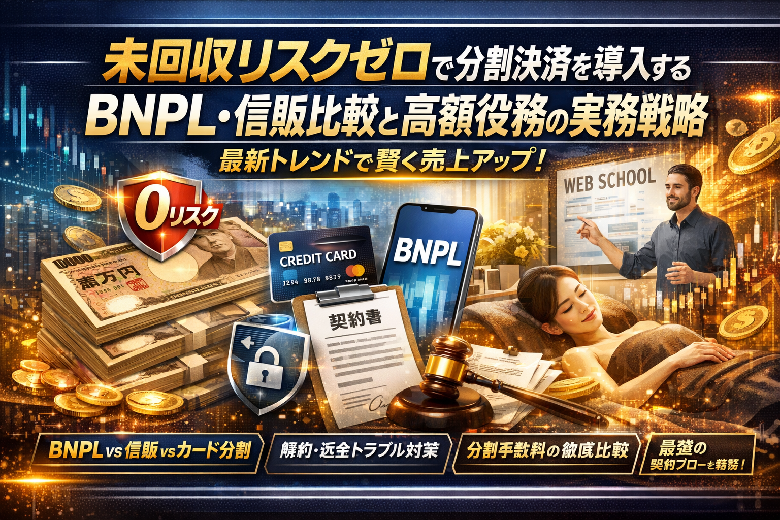 高額のWeb制作やスクール、エステの成約を増やしたいのに、「未回収リスクが怖くて分割決済を広げ切れない」。その状態のままBNPLやクレジットカードの分割をなんとなく導入すると、売上は増えているのに手元の現金と決済アカウントだけが危うくなる構造に入り込みます。BNPLや決済代行サービスは「未回収リスクゼロ」「一括入金」とうたいますが、本当にゼロになるのは回収業務だけで、解約・返金トラブルや規約違反によるアカウント停止までは肩代わりしてくれません。