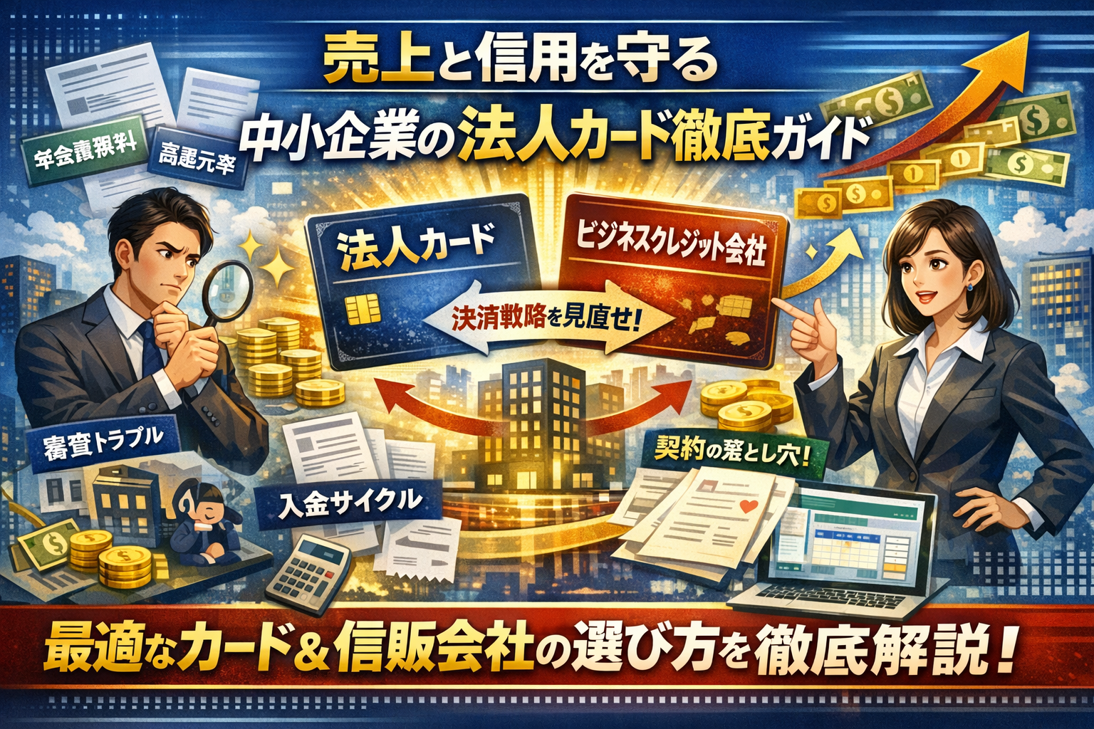 中小企業の経営者とお話ししていると、「法人カードは銀行に勧められたまま」「ビジネスクレジットは営業担当の言う通り」という声をよく聞きます。実際に、顧客の分割決済用に選んだ信販会社の入金サイトが想定より長く、手元資金が足りずに広告費を急ブレーキせざるを得なくなった相談や、高額役務の解約トラブルをきっかけに、カード会社から急に利用枠を絞られた相談も受けてきました。私自身、設立間もない事業者の支援で、法人カードとビジネスクレジットを別々に選んだために、審査は通ったのに運用で息切れしたケースを目の当たりにし、「決済は単なる支払い手段ではなく経営インフラだ」と痛感しました。本記事では、その反省から、法人カードとビジネスクレジットを一体で設計し、お金と信用を同時に守る視点をお伝えしたいと考えています。