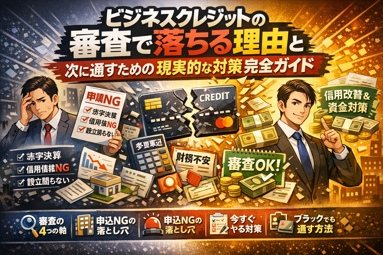 ビジネスクレジットの怖さは、落ちる理由が「最初の審査だけ」ではないことです。