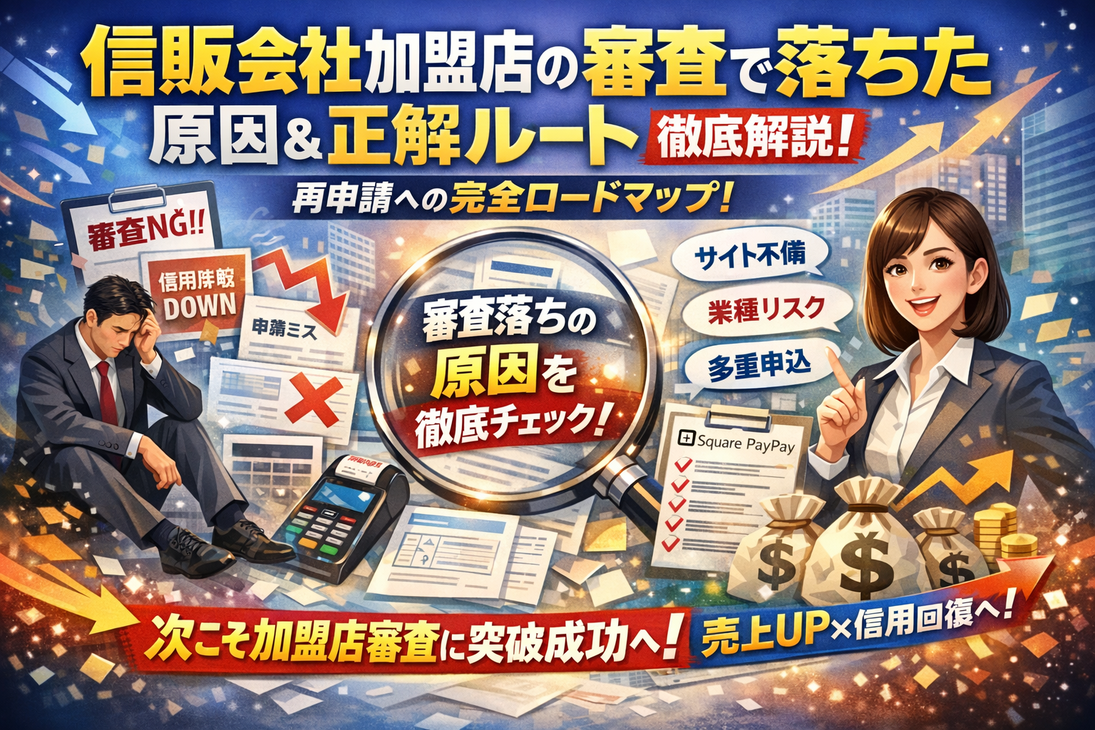 信販会社加盟店の審査で落ちたとき原因や次に通す正解ルートを徹底解説!失敗を挽回したい人必見の攻略ガイド
