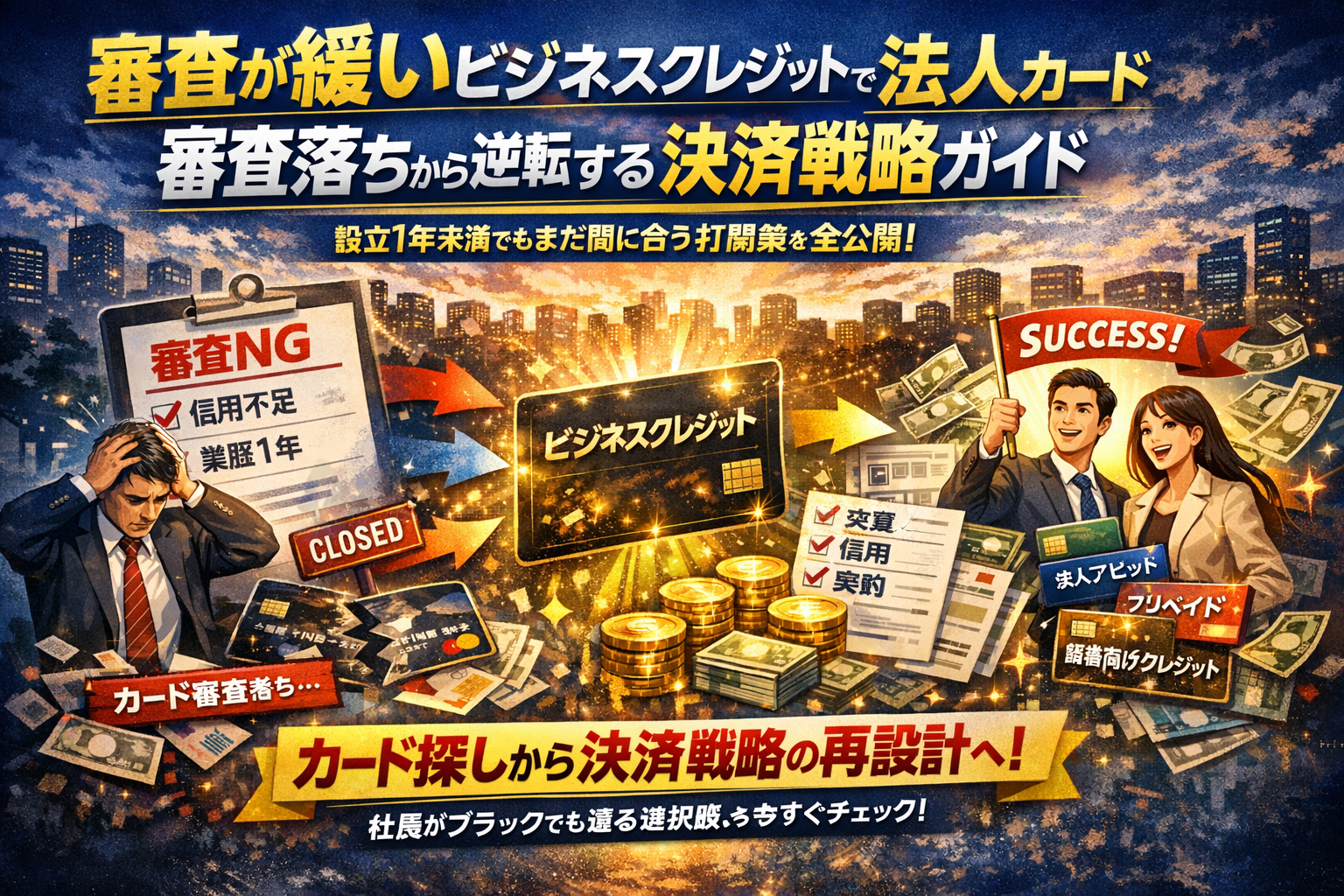 法人カード審査に何度も落ち、「次こそは」と審査が緩いビジネスクレジットや審査が甘いビジネスカード、法人カード審査なしといった情報を渡り歩いていないでしょうか。法人カード審査落ちた理由を「営業年数が浅いから」「代表がブラックリストだから」とだけ捉えていると、ランキング記事をいくつ読んでも結果は変わりません。このガイドでは、法人カード審査基準の実際のチェックポイントを、営業年数・決算状況・個人信用情報の三層と、事業実態や契約フォーマットという見えにくい条件まで含めて分解します。そのうえで、法人デビットカードや法人プリペイドカードがどこまで代替になり、どこから限界なのか、さらには顧客向けビジネスクレジットという第三の選択肢まで一気に整理します。設立1年未満のWeb制作会社や美容サロンが「審査が甘いカード探し」で遠回りした具体例を起点に、コーポレートカード審査落ちへの不安、社長がブラックでも通るという宣伝文句の読み解き方まで、決済戦略として再設計できる形でお伝えします。カード探しを続けるか、決済の設計ごと組み替えるかを判断できる実務マップを手に入れたい方だけ、読み進めてください。