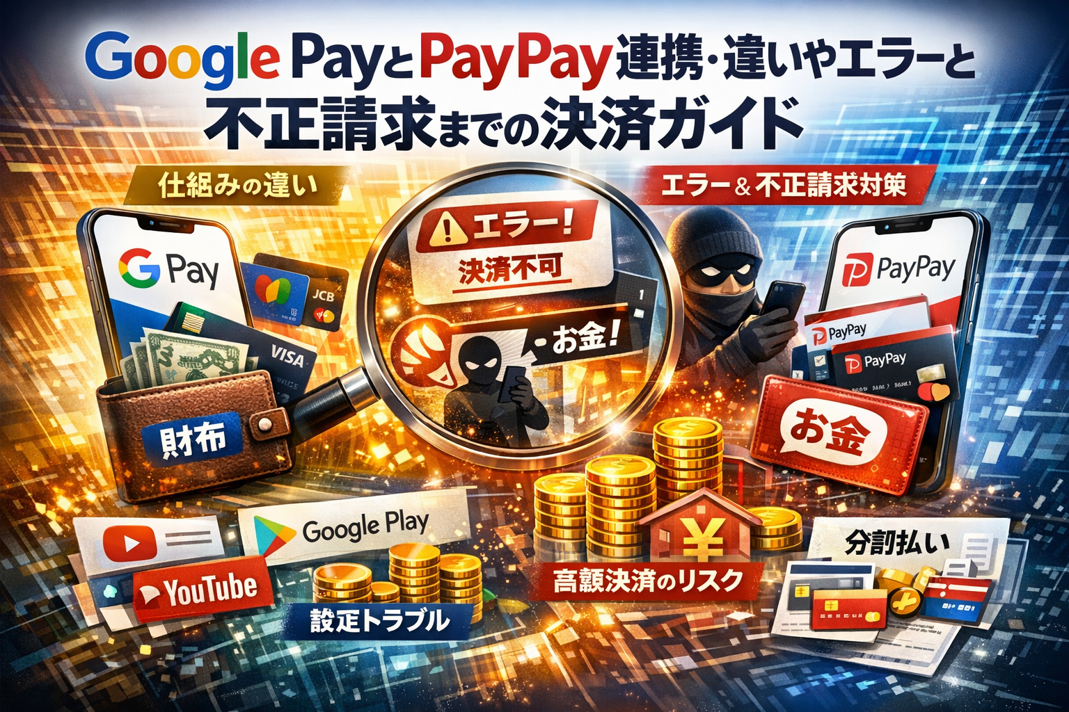 この記事では、Google PayとPayPayの違いと関係性を「財布」と「お金」のレイヤーで整理し、Androidでの連携条件、Google PlayやYouTubeでの支払い設定、「この支払い方法は使えません」「連携できない」エラーの切り分け方を一気通貫で言語化します。あわせて、PayPayからGoogleへの身に覚えのない支払いが出たときの確認画面、ポイント還元を最大化する決済ルール、さらには高額サービスでGoogle PayやPayPayだけに頼ることのリスクと、ショッピングクレジットを組み合わせた設計の考え方まで具体的に示します。