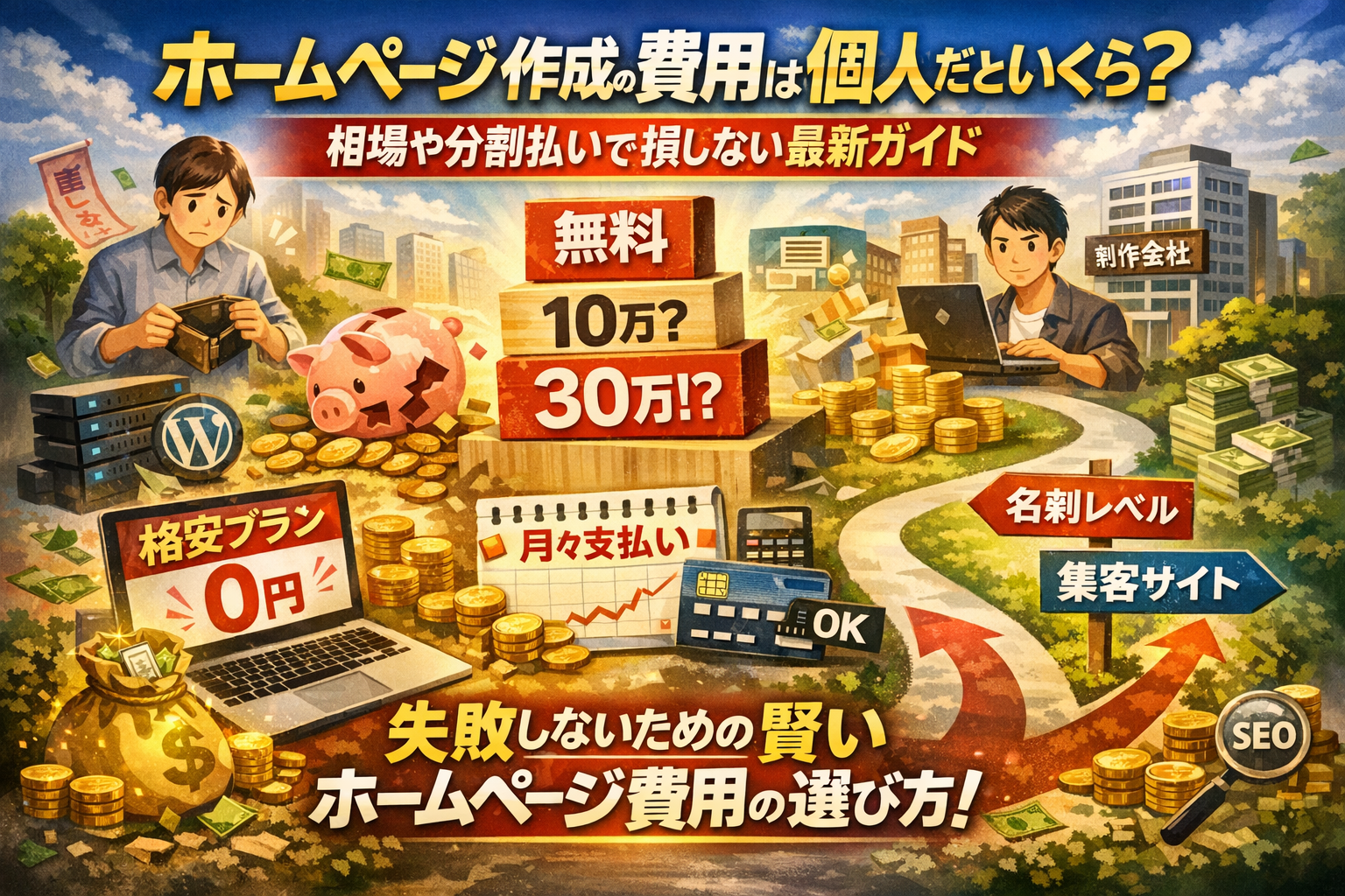 本記事では、レンタルサーバーやドメインなどの初期費用から、保守・更新・SEO対策までの維持費を網羅しつつ、「名刺代わりで十分なケース」と「集客サイトに投資すべきケース」の線引きを具体化します。そのうえで、フリーランス相場や制作会社の料金表の読み方、10万円以下の格安依頼や初期費用0円・月額制サービスで起こりがちなトラブル、ビジネスクレジットによる分割決済の使いどころと法律面の注意点まで、現場の実例ベースで分解します。