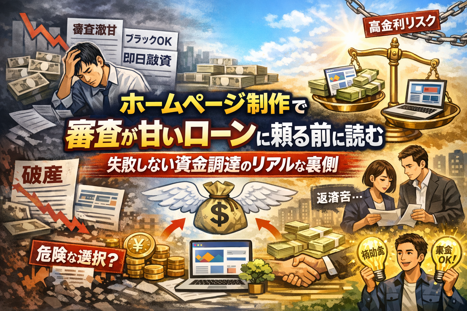 ホームページ制作の相談を受けていると、「審査が甘いローンでとりあえず作りたい」という声が必ず出てきます。制作費そのものより、返済が始まったあとに資金繰りが崩れていく姿を何度も見てきました。とくに、検索で見つけた「必ず借りれる」「ブラックでも安心」といった文言だけを頼りに申し込んでしまい、気づいたときには毎月の返済額が売上に対して重すぎる状態になっているケースです。