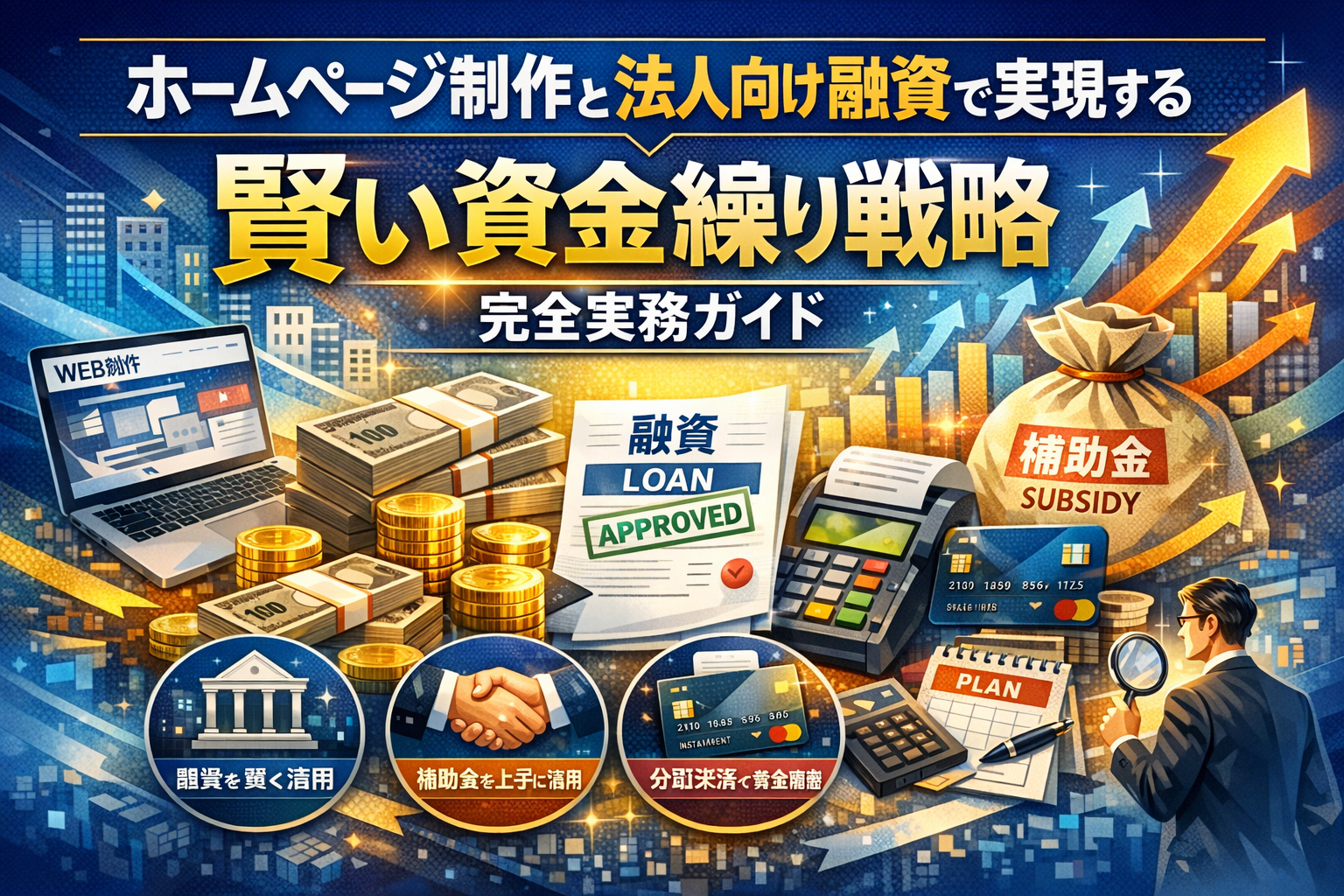 本記事では、10ページ前後のホームページ制作費の相場と内訳を前提に、融資・補助金・分割決済・ビジネスクレジットをどう組み合わせれば資金繰りを崩さずに投資できるかを、実務の流れに沿って解説します。銀行や日本政策金融公庫がホームページのどこを見ているのか、融資前提契約で支払い不能に陥る典型パターン、分割決済導入で制作会社と企業の双方のリスクを下げる方法まで一気通貫で整理します。