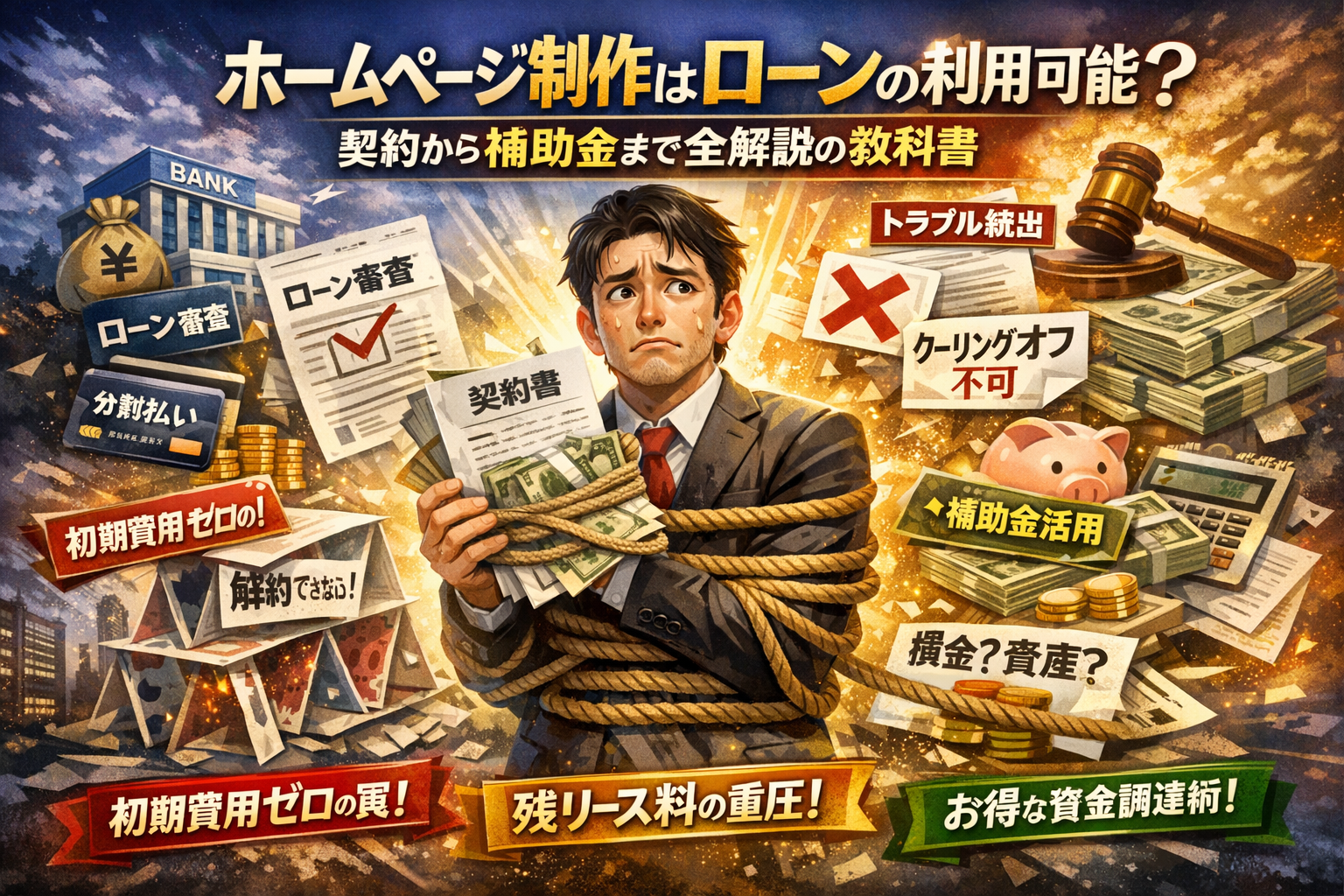 ホームページ制作の営業を受け、「初期費用ゼロ」「月額◯万円」「ローン利用可能」と言われた瞬間から、あなたの手元の現金と選択肢は静かに縛られ始めます。多くの中小企業が、ホームページ リース契約やクレジット契約を選んだ後で、HPキャンセルできない、リース契約 クーリングオフが効かない、残リース料が重くのしかかるという現実に気付きます。その原因は、ローンとリース、補助金、損金と資産、クーリングオフや特定商取引法の関係を「バラバラに」理解したまま契約していることにあります。この記事では、ホームページ作成から運用までの本当の総額、銀行ローンや日本政策金融公庫、ショッピングローンや分割払いの使い方、ホームページ リース商法の契約書で見るべき条項、ホームページ 解約 弁護士に頼る前の自衛策、さらに補助金との組み合わせで制作費を軽くする実務の組み立てまで、一本の流れで整理します。どの制作会社やホームページ リース会社一覧を見比べる前に、この教科書を一度通読しておけば、「月額の安さ」ではなく「手残りと自由度」で判断できるようになります。読み進める時間より、知らずにサインする一筆の方がはるかに高くつきます。