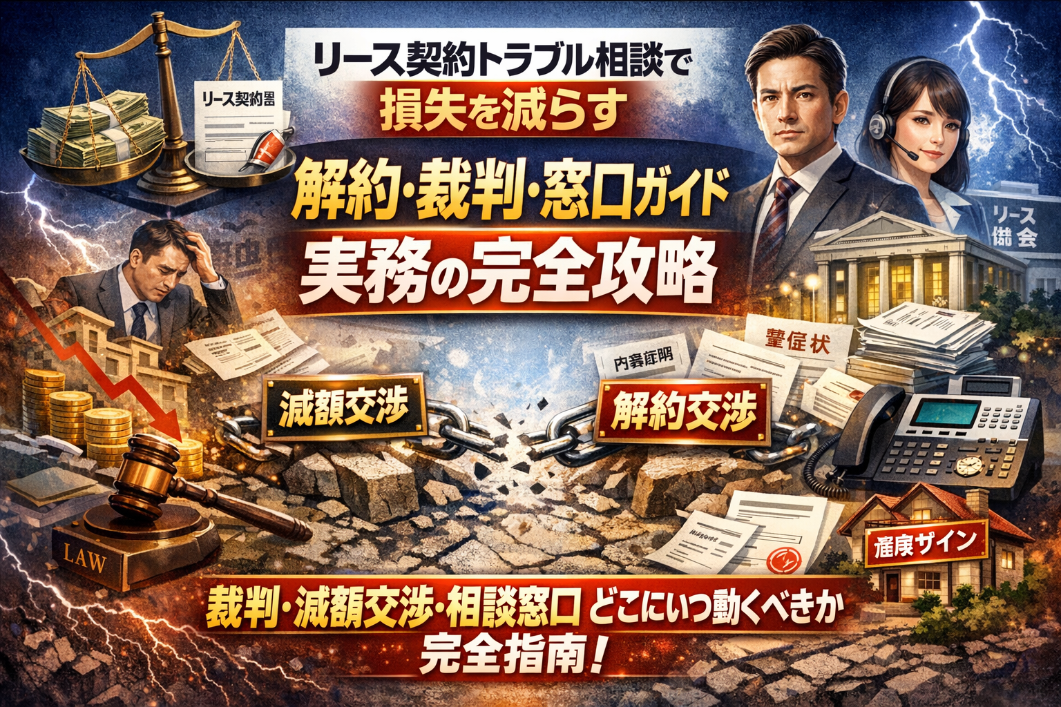 読み進めれば、自分のリース契約トラブルが「裁判や減額交渉を検討すべき案件なのか」「どの相談窓口に何を持ち込めば、損失とリスクを最小化できるのか」を具体的に判断できるようになります。