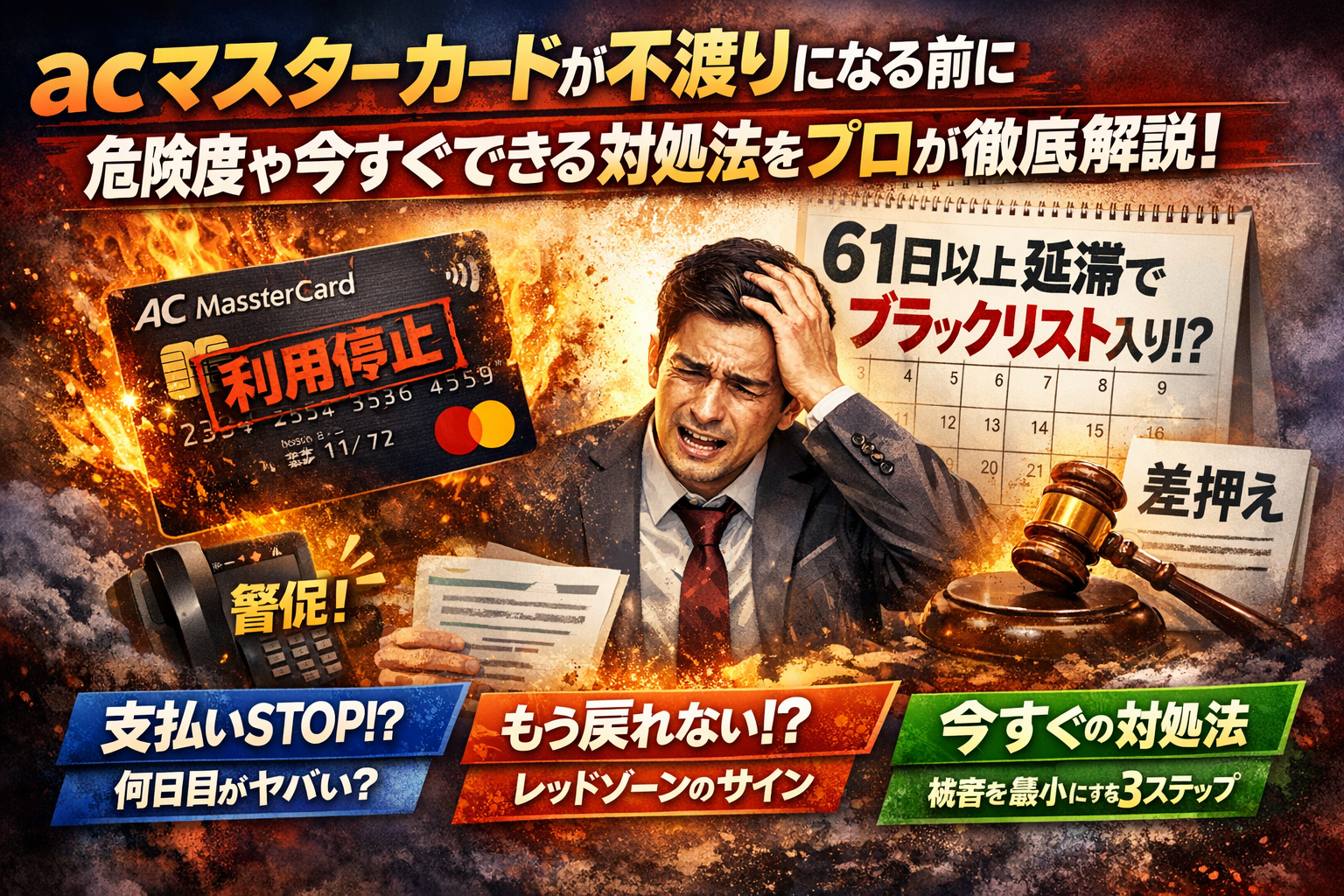 あなたのacマスターカードの支払が口座残高不足で止まった瞬間から、現金よりも厄介なのは「信用情報」です。数日の延滞でもカード利用停止と遅延損害金が発生し、放置すれば電話やハガキでの督促、さらに61日以上の長期延滞で異動情報が登録され、いわゆるブラックとして住宅ローンやスマホ分割、ビジネスローンまで制限されます。強制解約や一括請求、裁判や差押えに進むのは「一部の人の話」ではなく、延滞と無視を積み重ねたごく現実的な結末です。