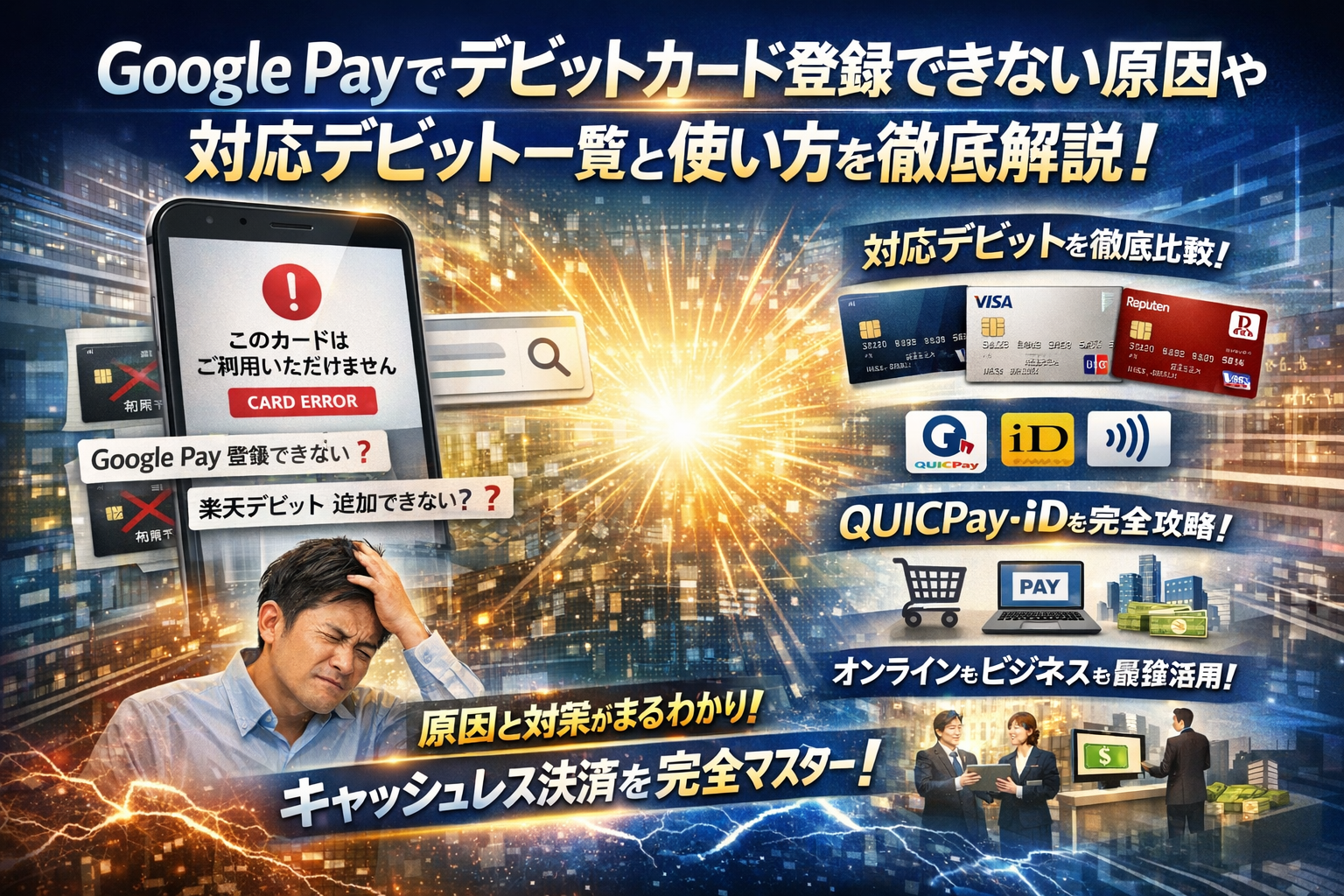 レジ前でGoogle Payに登録したはずのデビットカードが反応せず、「このカードはご利用いただけません」と出た瞬間から、あなたの時間と機会損失は静かに増え続けます。原因が端末かカードかGoogleウォレットの設定か切り分けられないまま、Google Pay デビットカード 登録できない、楽天デビットカード ウォレット 追加できない、と検索を渡り歩く状態こそが、最も非効率なコストです。