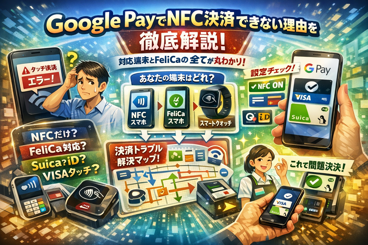 レジ前でGoogle Payのタッチ決済が反応せず、店員に「もう一度お願いします」と言われ続けているなら、すでに時間と信用を失っています。原因は運ではなく、Google Pay NFCとGoogleウォレット、おサイフケータイ、FeliCaの関係を正しく整理できていないことにあります。NFCのみのAndroidやXiaomi、Huawei端末で「Suicaが使えないのにVisaタッチは通る」「QUICPayになる」「このカードではタッチ決済を設定できませんと表示される」といった現象は、端末、カード、レジ側それぞれの条件が噛み合っていないだけです。この記事では、Google Pay NFCとFeliCa対応の違い、GoogleウォレットとGoogle Payの役割分担、NFCオフや設定ミスでタッチ決済が使えない典型パターンを一枚のマップに落とし込みます。そのうえで、NFCのみ端末で現実的にできること、FeliCa搭載スマホでSuicaやiD、QUICPayとどう両立させるか、スマートウォッチやMi Bandでどこまで狙えるかまで、「自分の端末とカードなら何ができるか」が一度で判断できる状態まで持っていきます。読み進めれば、もう「Google Pay NFC非対応かも」と疑い続けて試行錯誤を繰り返す必要はなくなります。