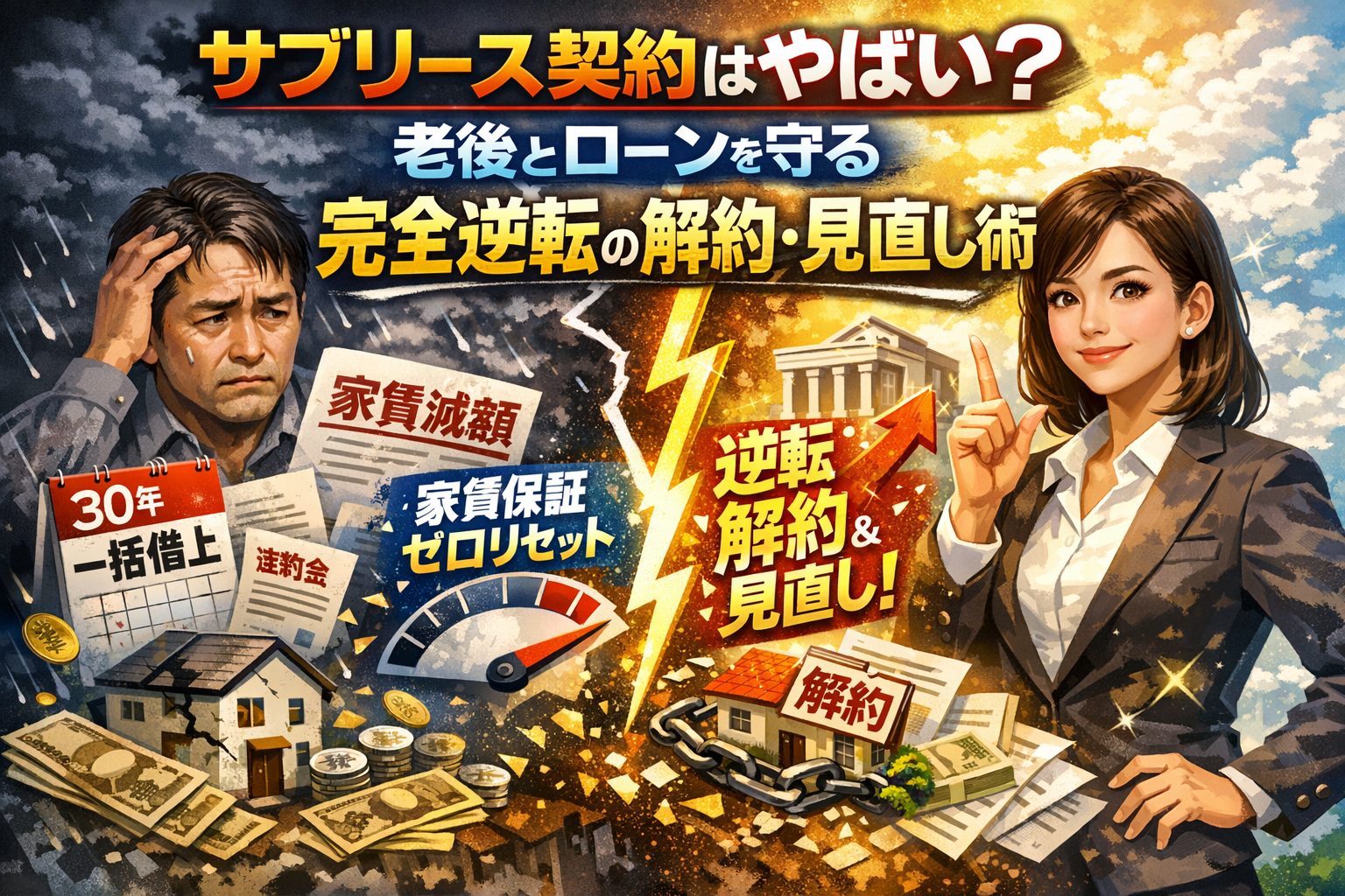 本記事では、サブリースとは何かをお金の流れで整理しつつ、「30年一括借上」と「家賃保証ゼロリセット」の二重のワナが、なぜ賃料減額や解約トラブルに直結するのかをまず分解します。そのうえで、相続地主、ワンルーム投資家、これから新築を建てる経営者というタイプ別に、悪徳業者かどうかを見抜くチェックポイント、契約書のどこが本当に「やばい条文」なのか、一般管理・自主管理・売却まで含めた逆転シナリオを具体的に示します。