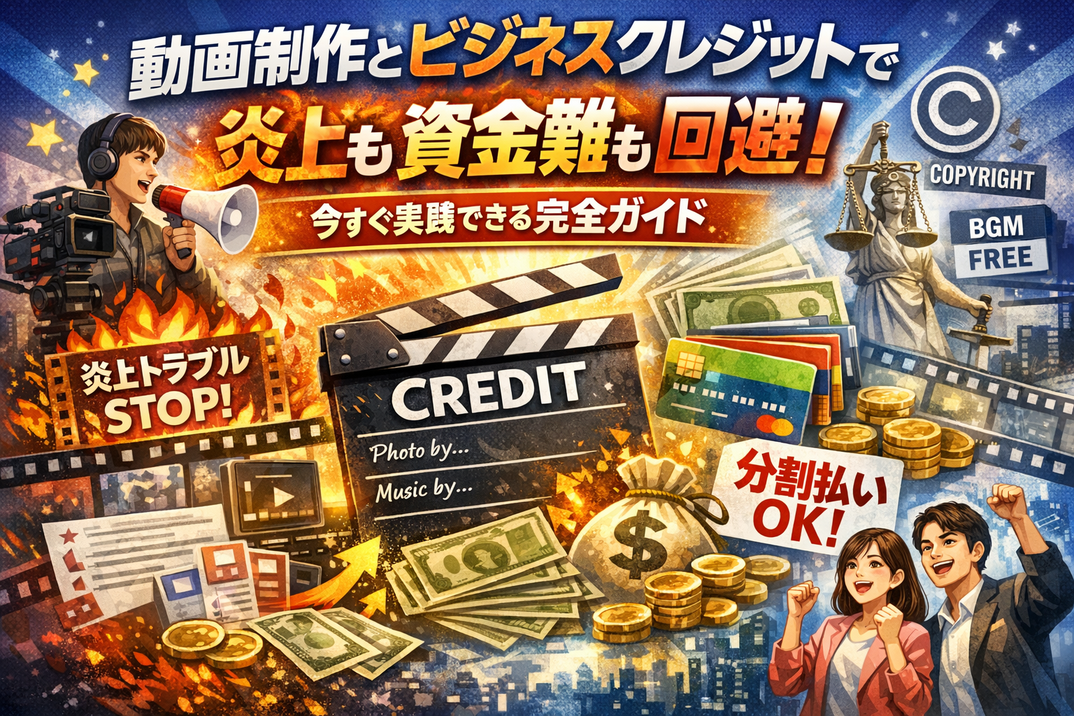 本記事では、企業PRやゲーム実況、結婚式ムービーまで網羅し、画像を掲載する際は著作者のクレジットを明記する基本から、フリー画像やBGM、AI画像の著作権リスク、エンドロール作り方の実務まで整理します。そのうえで、動画制作費用をショッピングクレジットや分割決済、ビジネスカードでどう組み立てれば、制作会社も発注企業も手元の現金を減らさずに済むかを、現場の事例ベースで解きほぐします。