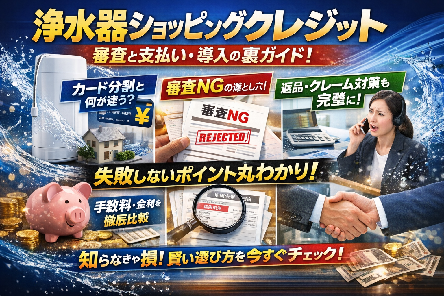 さらに、アムウェイのショッピングクレジットや日本トリムの分割払いで実際に起きた、審査落ちやショッピングクレジットとカード請求の混同、カートリッジ交換を怠ったことから生じるクレームなどを基に、契約書の一文やFAQ、カスタマーセンター対応の設計ポイントを解説します。浄水器販売店としてビジネスクレジットを導入し、未回収リスクを持たずに成約率を上げたい方にとって、信販会社選びから審査対策、注文管理、返品やキャンセルの運用までを一気通貫で見直せる内容です。ここで整理しておかないと、次の一件の契約からすでに損を積み上げ続けることになります。