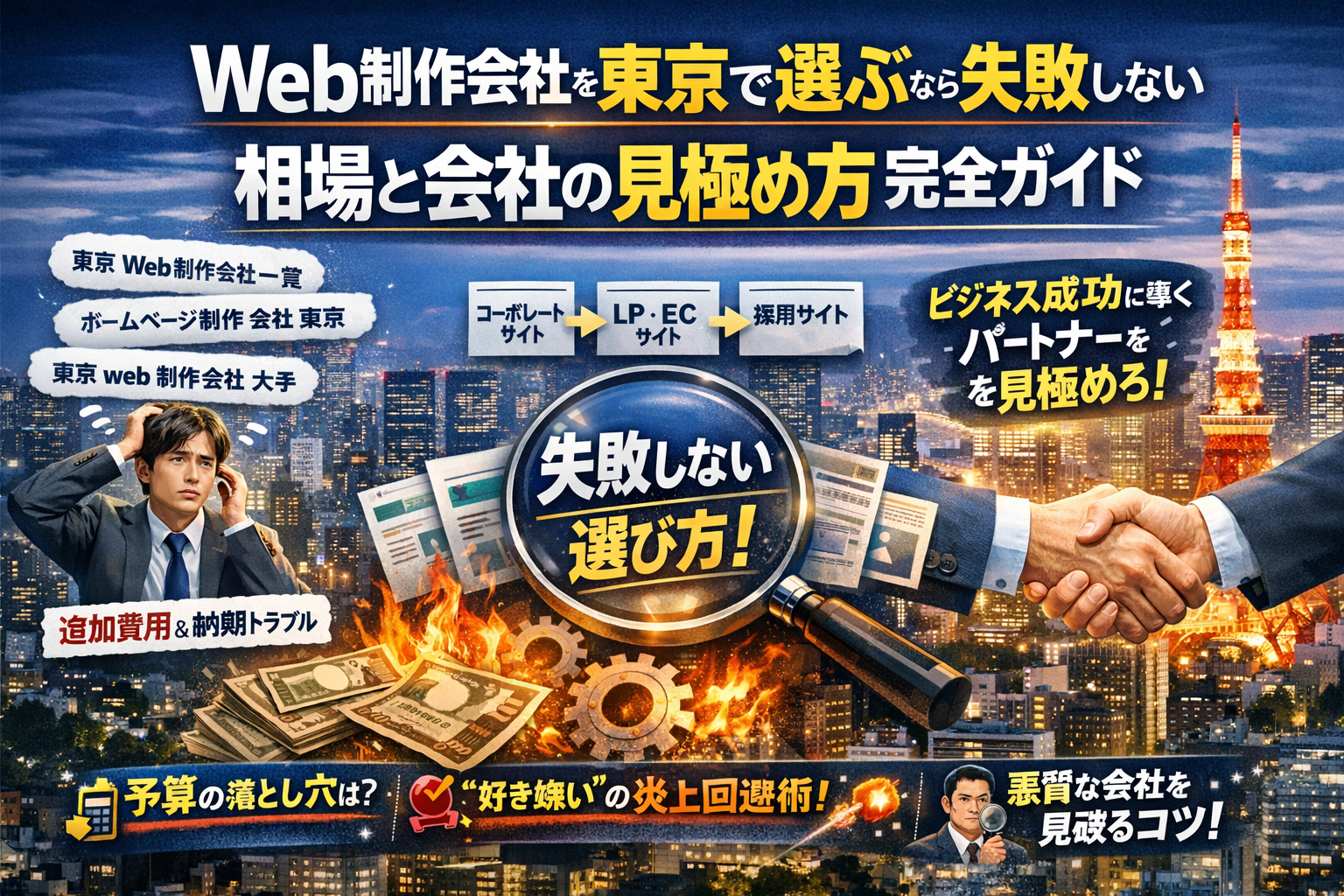 このガイドでは、東京のWeb制作会社をコーポレートサイト、LP制作、ECサイト、採用サイトといった目的別に整理し、「有名だから」「安いから」ではなく、自社のビジネスゴールと社内体制に合う相棒の見極め方を具体的な判断基準として示します。見積もりで何を比べるべきか、社長や役員の“好き嫌い爆弾”をどう事前処理するか、途中で「それは見積もり外です」と言われないための打ち合わせの進め方まで踏み込みます。さらに、東京のWeb制作会社で働きたい人向けに、ホワイト企業とやめておくべき会社の境界線も現場目線で解説します。東京でのWebサイト制作を次こそ失敗なく進めたいなら、この導入で止めずに読み進める価値があります。