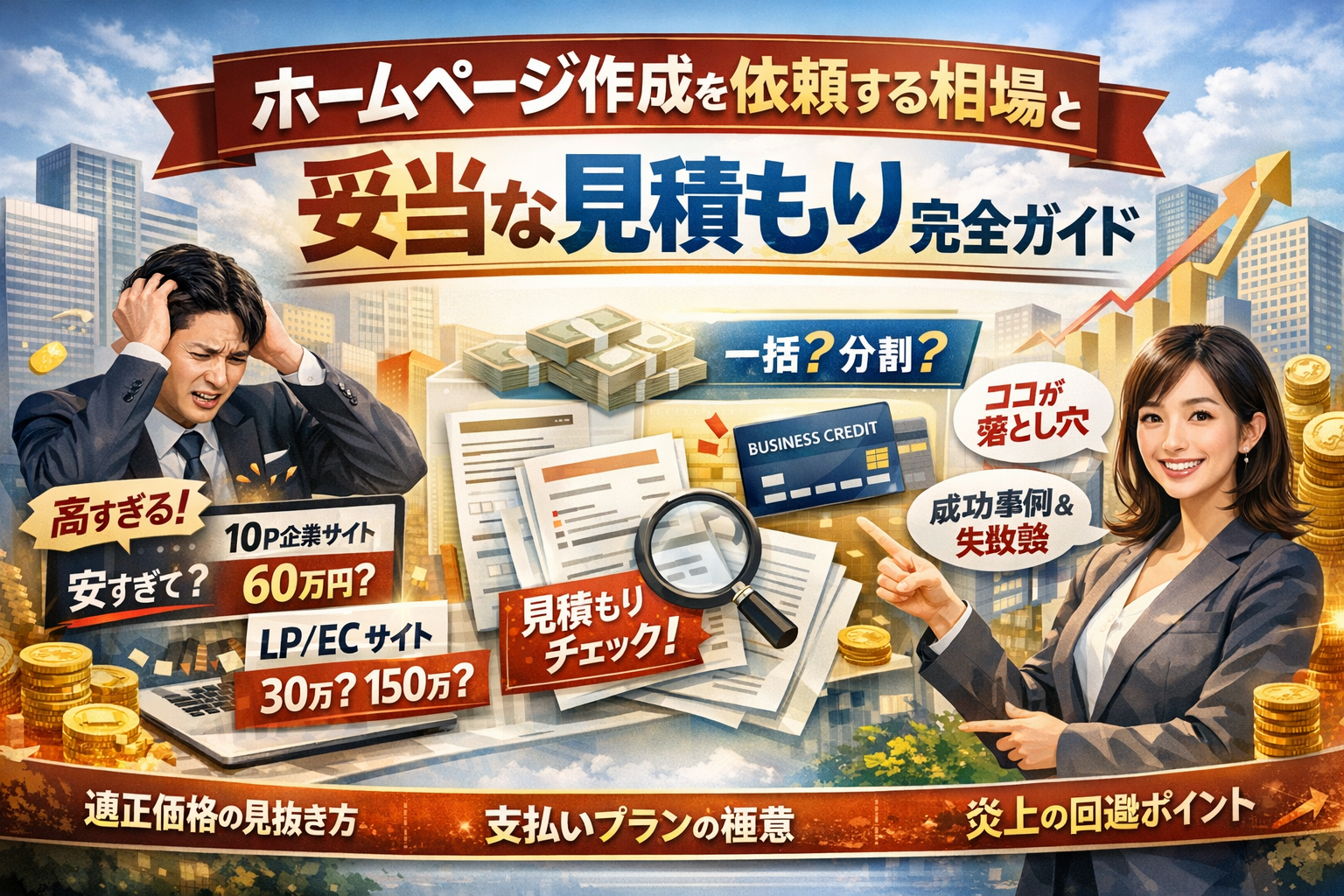 さらに、炎上した外注案件の実例、30万〜300万円の予算別で現実的に作れるサイト像、補助金活用時の落とし穴、そして分割決済やビジネスクレジットを前提にした支払い戦略まで、発注担当者が社内稟議を通しやすくする実務ロジックをまとめました。この数分のインプットを飛ばすかどうかが、これから数年の制作費と運用コストの差になります。読み進めるほど、どの見積書にGOを出すべきかがクリアになります。