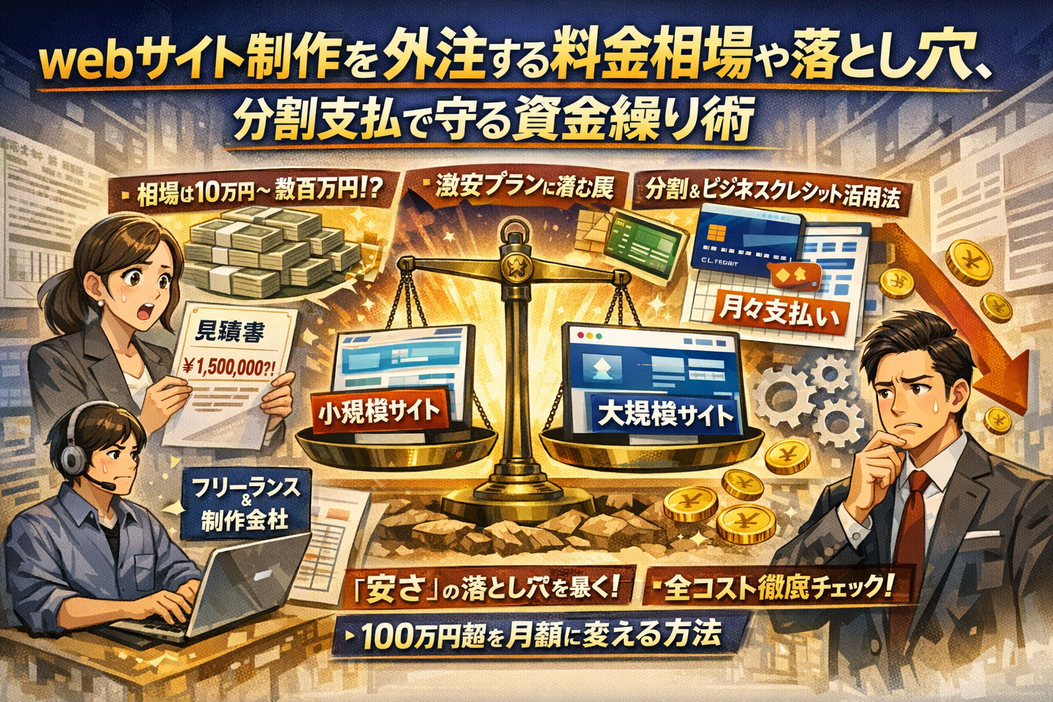 さらに、100万円超の制作費を分割払いやビジネスクレジットで月額に変える支払い設計まで踏み込み、資金繰りを崩さずに「必要なレベルのサイト」を導入するための実務ロジックを解説します。この記事を読むかどうかで、同じ予算でも選べる制作会社と将来のキャッシュの残り方が確実に変わります。